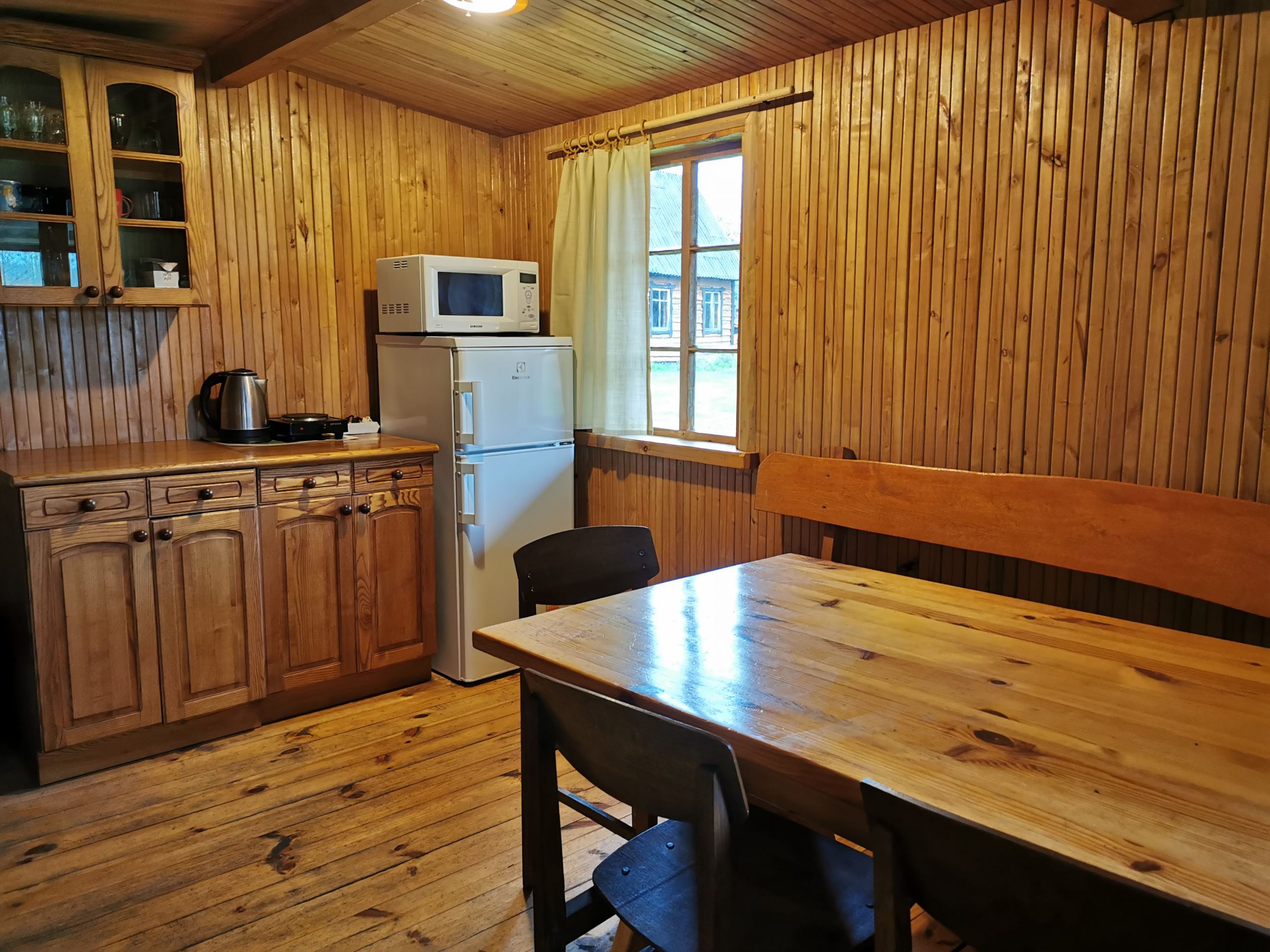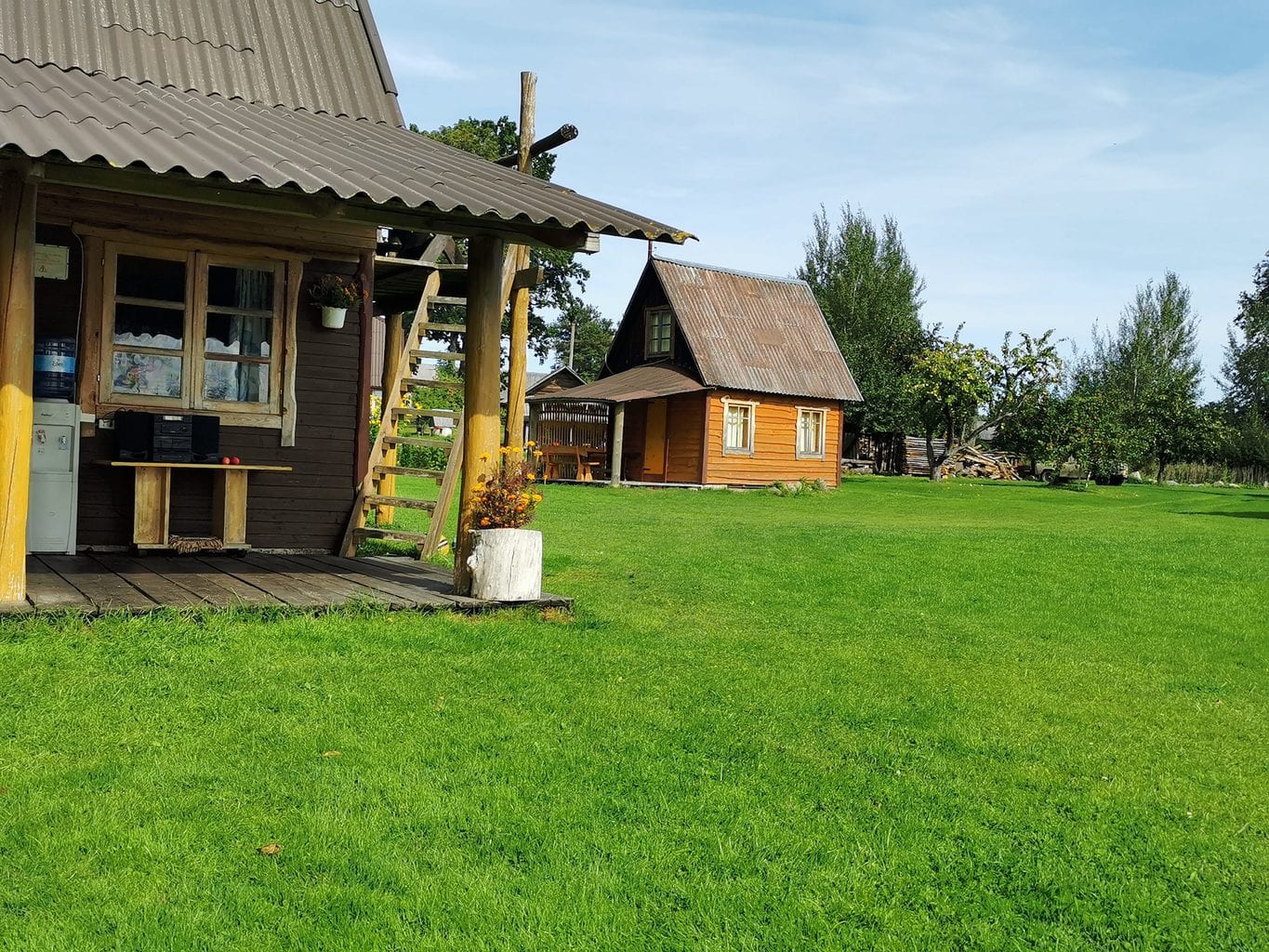 The houses have terraces, outdoor fireplaces, fire pits in the yard, barbecue, skewers, firewood. The kitchenettes in the farmhouse have all the necessary utensils, a kettle, a stove, a microwave, a fridge and drinking water.