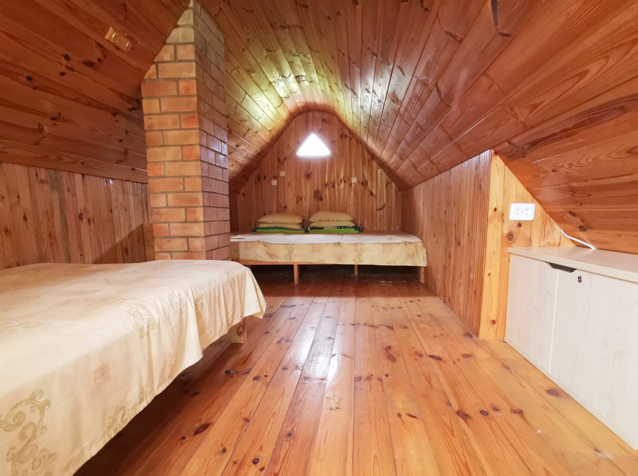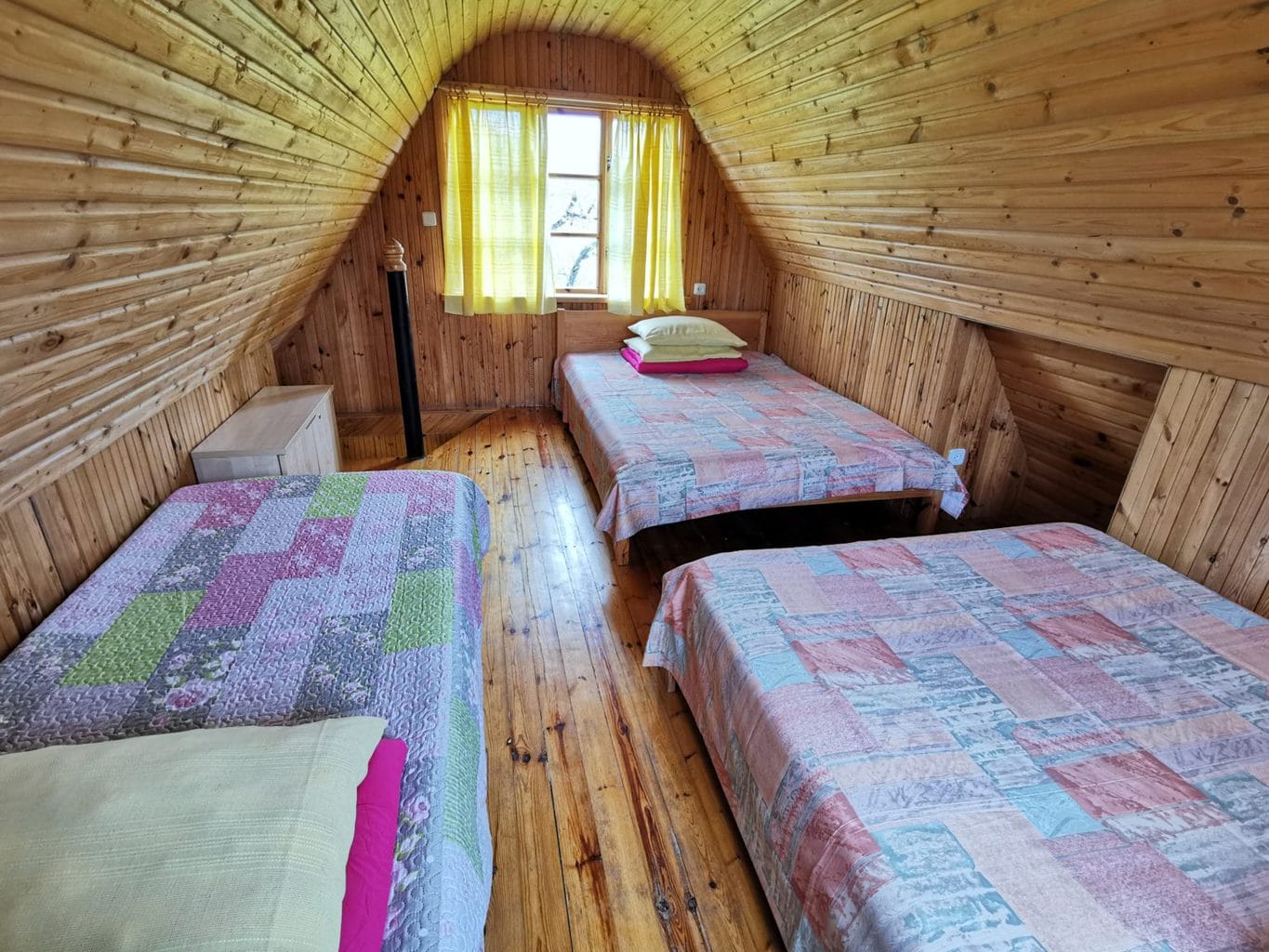 There are 8 bedrooms in total throughout the chalets, which can accommodate 42 people in beds, and we can provide extra mattresses if needed, so the number of people per night can be slightly higher. You can also spend the night in the courtyard in your own tents.