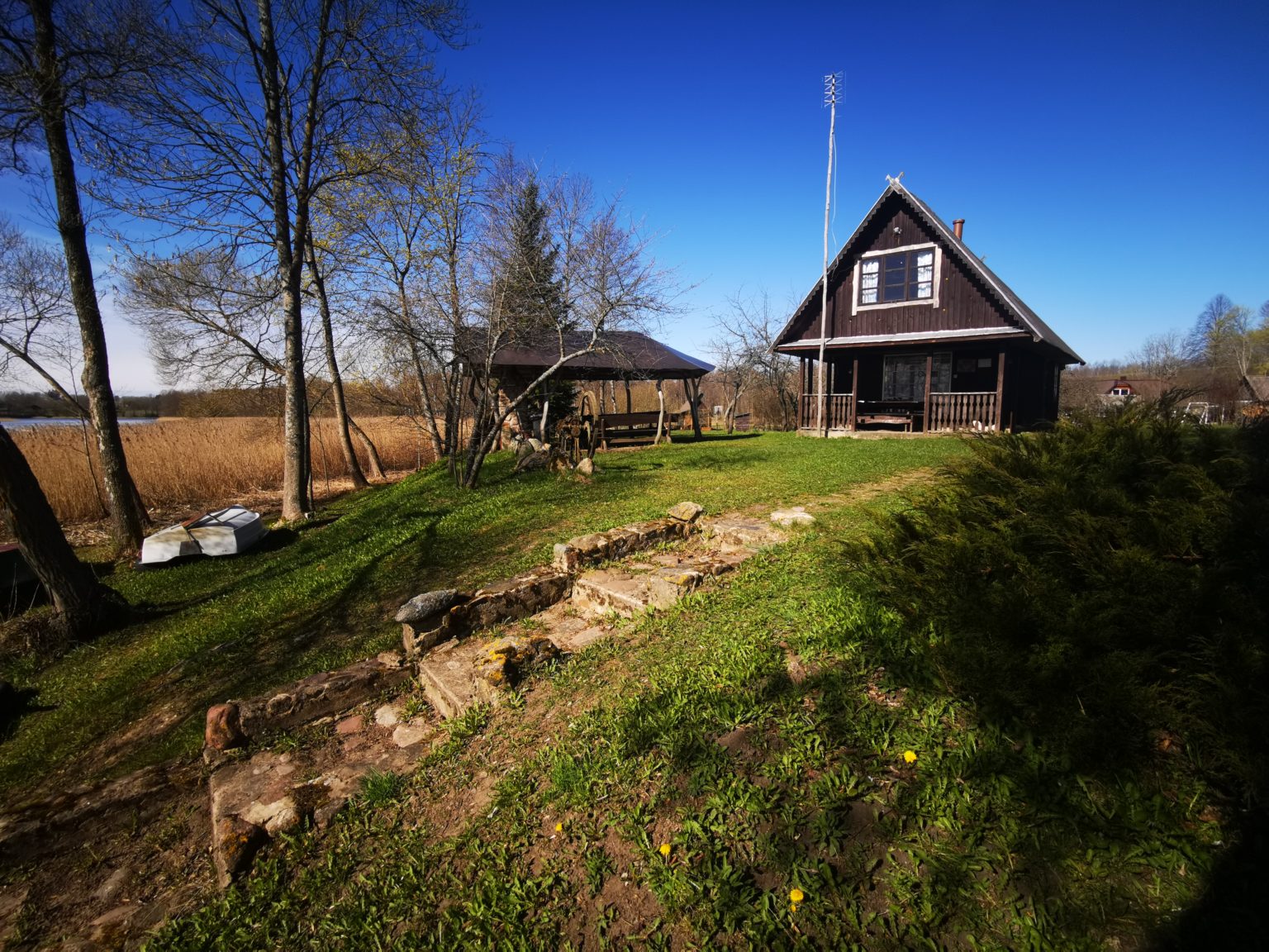 Это большой участок из 4 жилых домов на берегу озера.