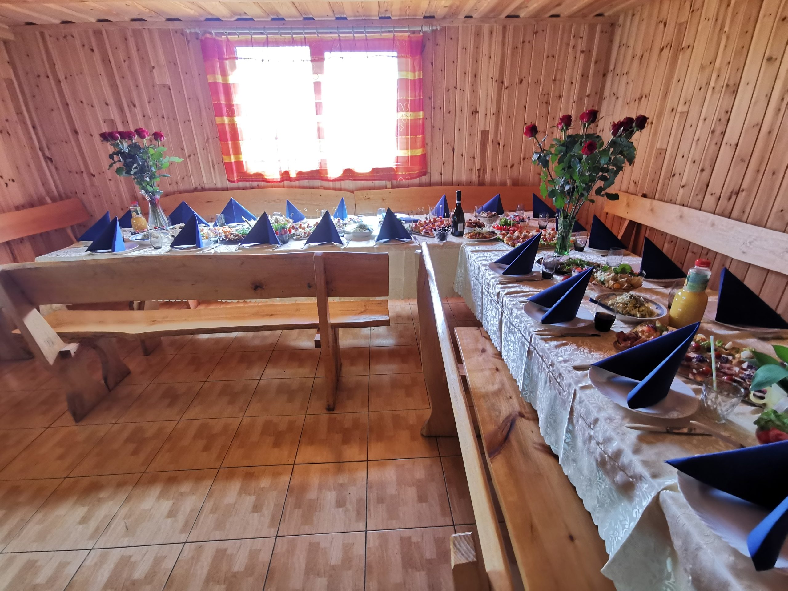 Всего в шале 8 спален, в которых могут разместиться 42 человека на кроватях, при необходимости мы можем предоставить дополнительные матрасы, поэтому количество человек на ночь может быть немного больше. Вы также можете провести ночь во дворе в собственных палатках.