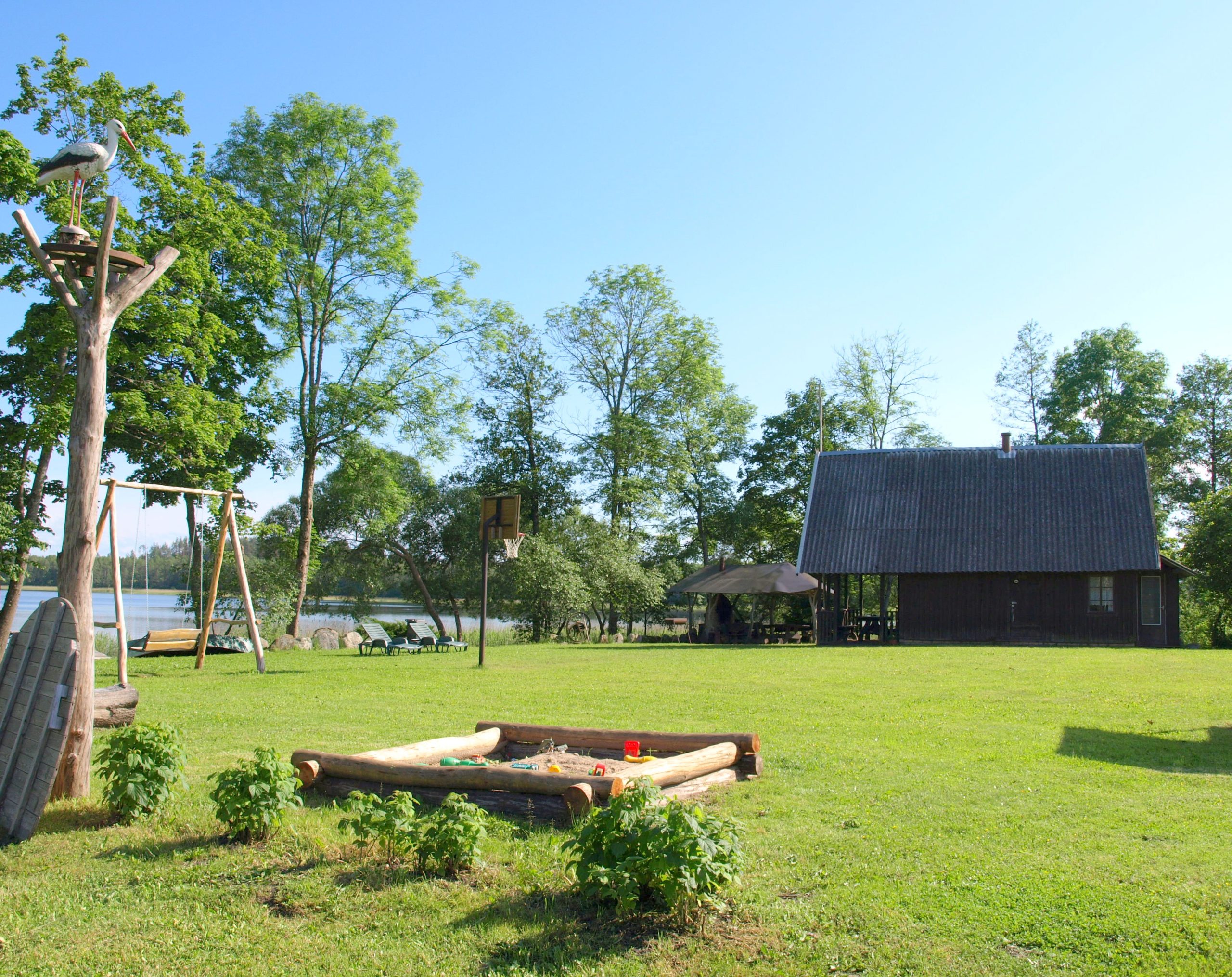 Также имеются площадки для игры в баскетбол, футбол и волейбол, качели и детская игровая площадка.
